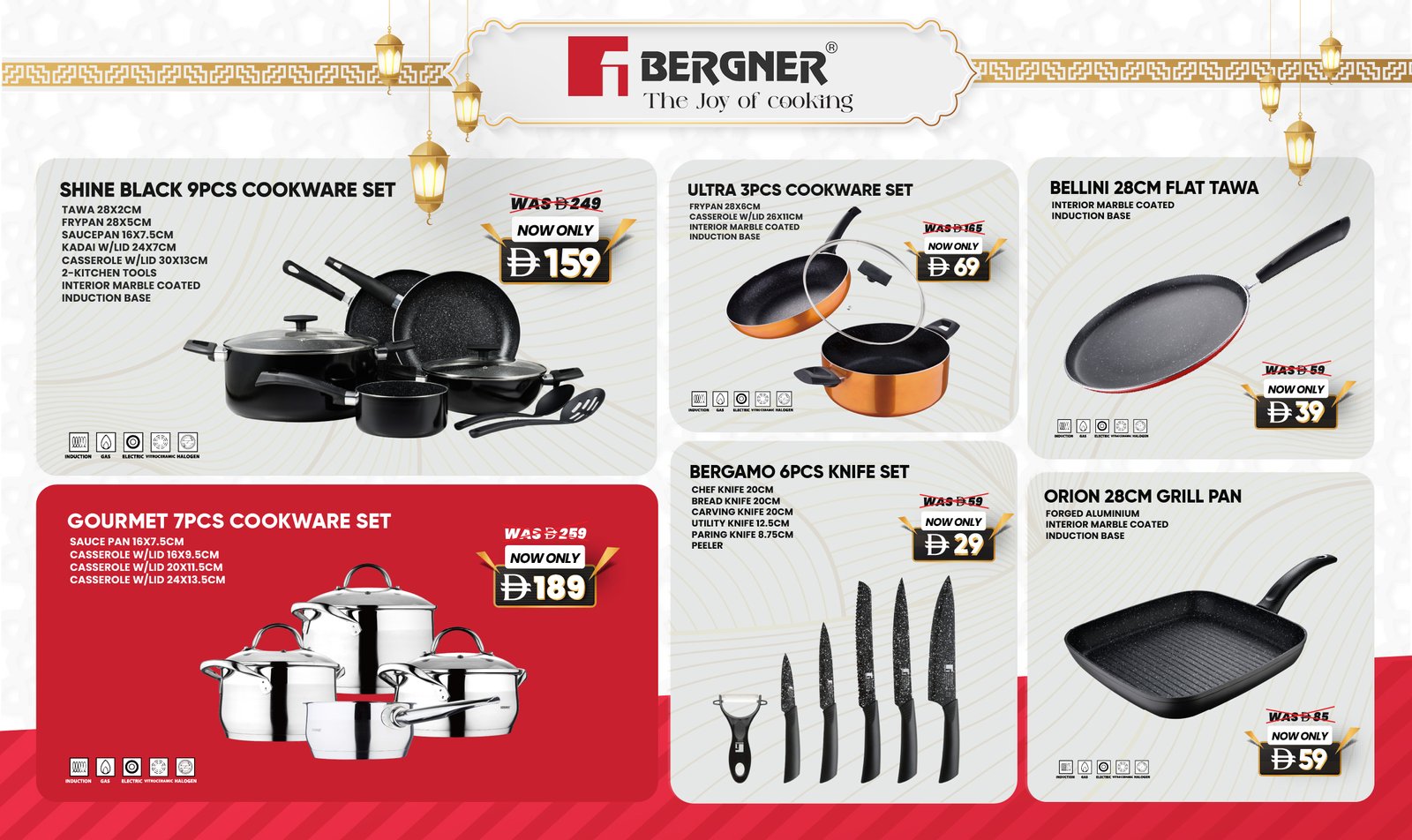 Bergner UAE required a visually compelling seasonal offer catalogue to promote cookware collections while maintaining premium brand identity and retail clarity.