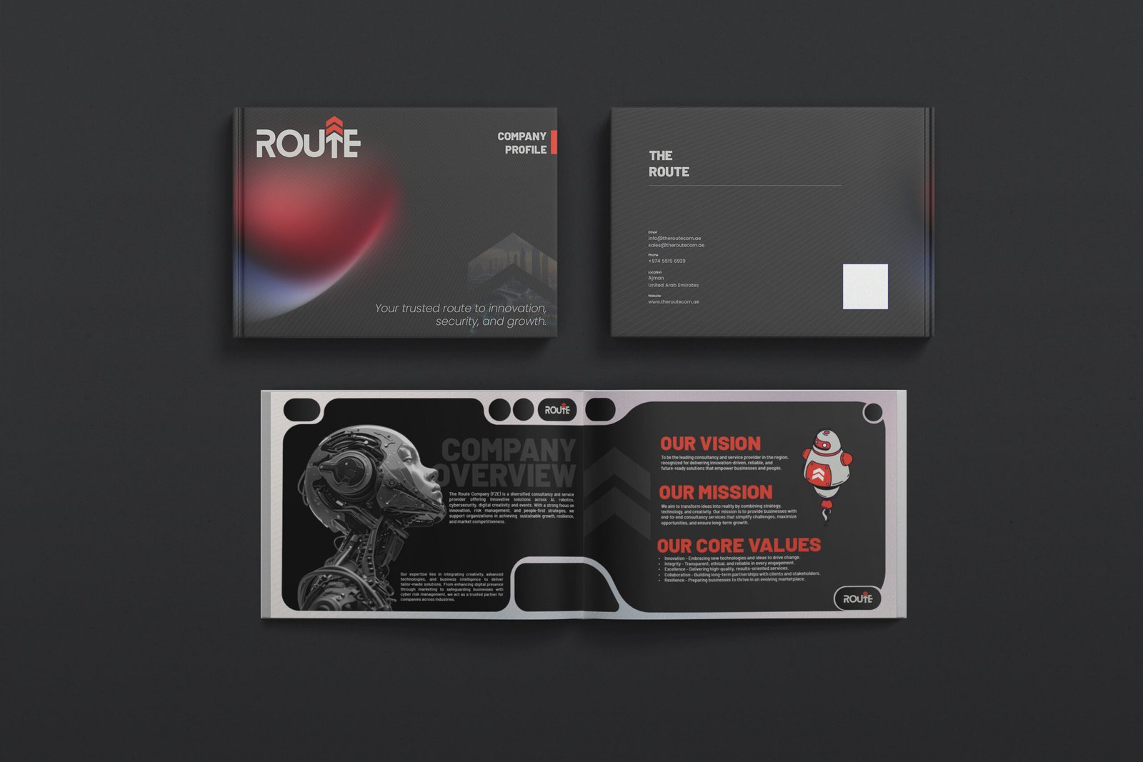 The project required creating a professional company profile that aligned with The Route Co’s positioning, ensuring clarity in messaging while maintaining a modern and visually engaging presentation.